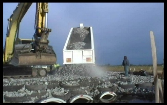 Mr Chris Edser overseeing the delivery of rock infill for the Ecoflex E Pave Access Road System at Williamtown NSW. |
